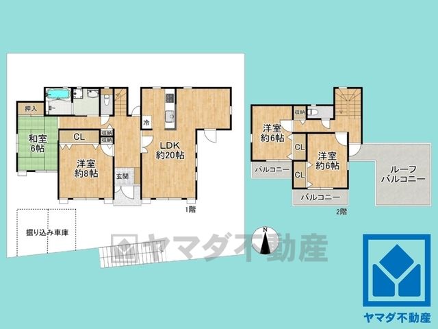 | 間取り詳細 | LDK20畳(1F)、洋8畳(1F)、和6畳(1F)、洋6畳(2F) | 都市計画 | 市街化区域 |