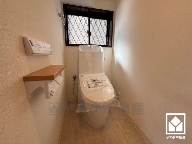 明るく清潔感溢れるトイレです。温水洗浄便座付きで、季節を問わずいつでも温かい便座をお使いいただけます。