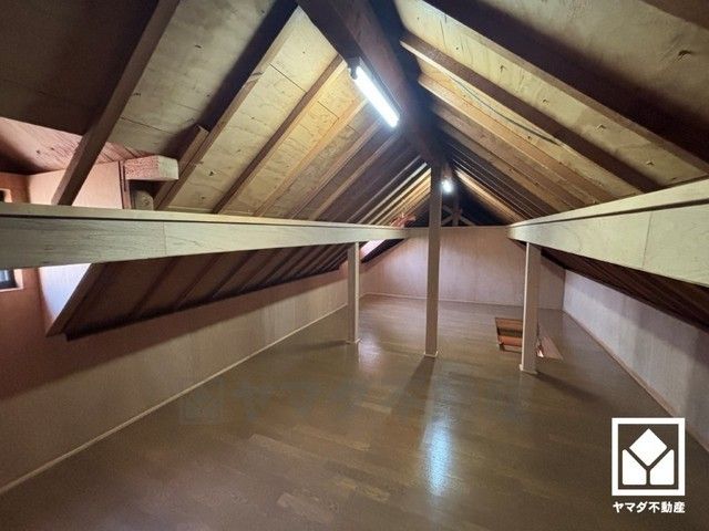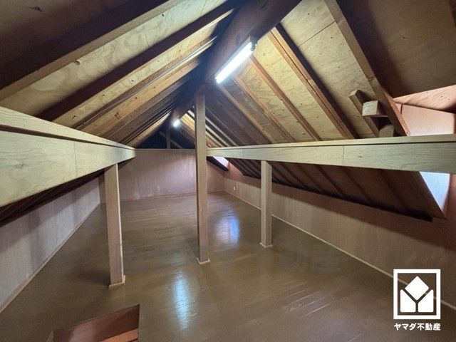 収納力豊富な屋根裏収納付き。アウトドア用品や季節の荷物、趣味の道具もしっかり収納できます。