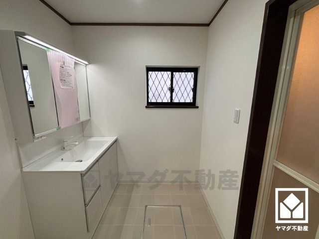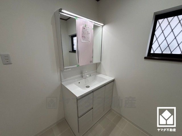 収納付きでスッキリお使い頂ける洗面台です。洗面ボウルが広めなので、忙しい朝でも身支度がしやすく時短になります。