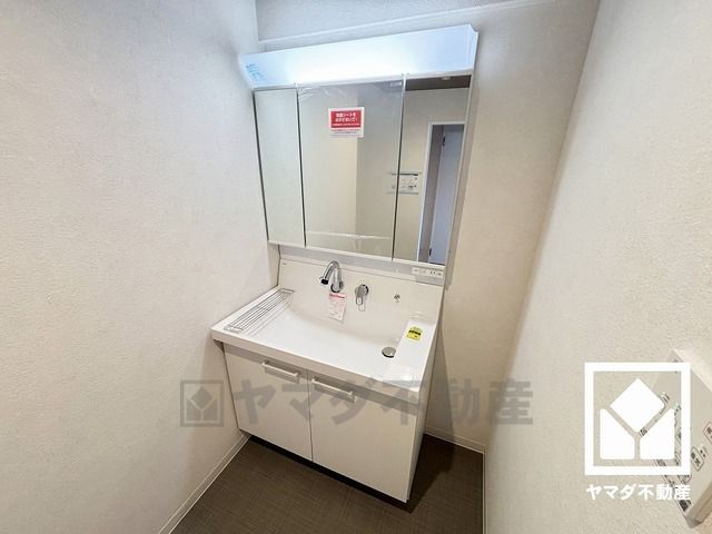 収納付きでスッキリお使い頂ける洗面台です。洗面ボウルが広めなので、忙しい朝でも身支度がしやすく時短になります。