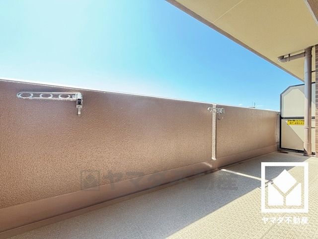 広々バルコニーでお洗濯物をたっぷりと干す事ができます。西側は公園のため開けており、前面に視界を遮る高い建物がないため開放的な景色が広がります。