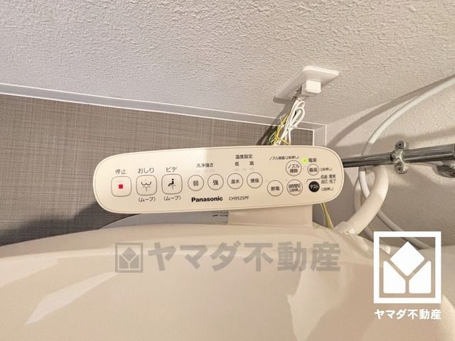 明るく清潔感溢れるトイレです。2連トイレットペーパーホルダーなのでお取替えの手間が軽減できます。トイレットペーパーのストックや、消耗品置き場、小物置きなどとしてもお使いいただける棚がございます。