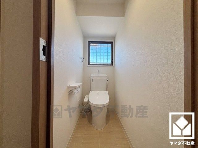 明るく清潔感溢れるトイレです。2連トイレットペーパーホルダーなのでお取替えの手間が軽減できます。