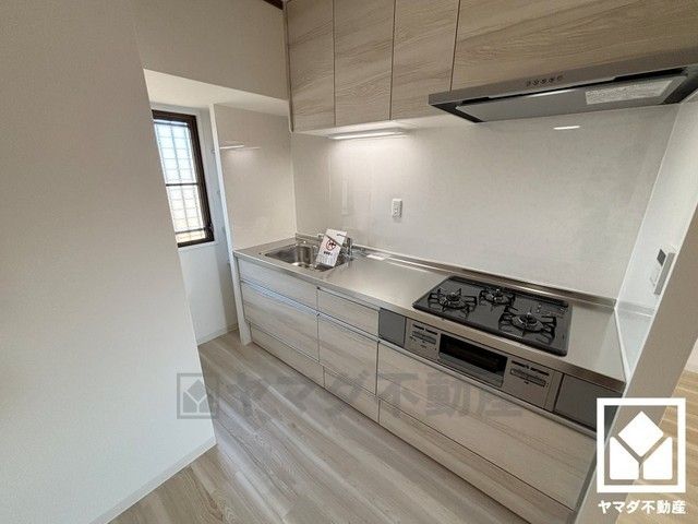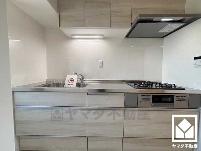 キッチンは空間を有効活用できる壁付けタイプ。毎日の料理がもっとスムーズになる、便利な3口コンロ付き。