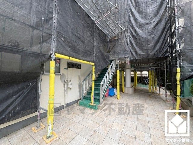 白を基調とした清潔感のある外観。帰るたびに安心感を感じられる佇まい。2026年2月現在、大規模修繕工事中です。