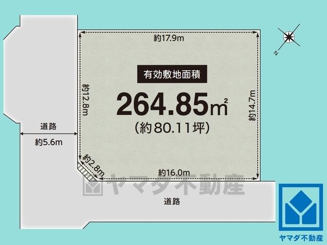 物件用途 | - | 接道 | 私道 北西 幅員3.8m (接面16m) 私道 北東 幅員5.6m (接面12.8m) |