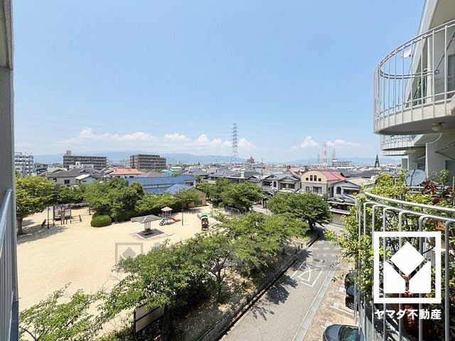 西側は公園で開けており、採光・風通し良好です。視界を遮る高い建物がなく、開放的な景色が広がります。
