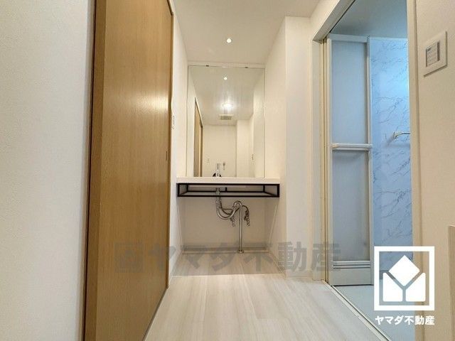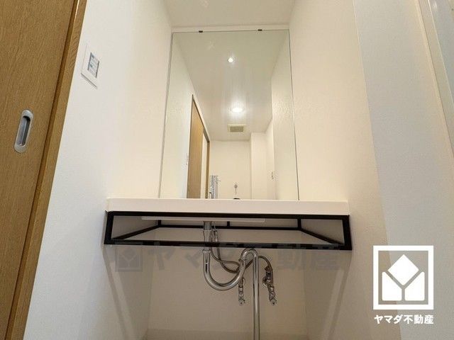大きな鏡を備えたワイドな洗面台で忙しい朝でも身支度がしやすく時短になります。