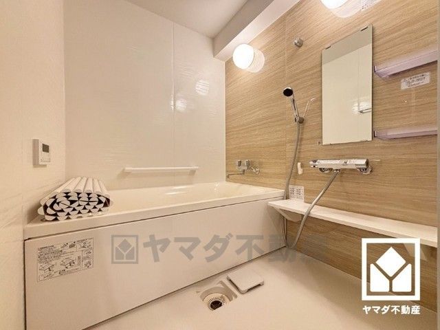 1日の疲れを癒す浴室でゆったりリフレッシュ。ナチュラルな木目調のアクセントパネルは落ち着いた雰囲気を演出してくれます。