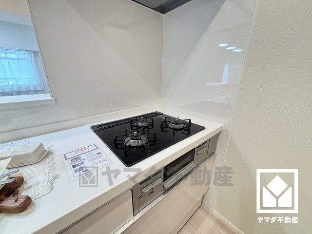 カウンターキッチンなので配膳や片付けがしやすく、お料理中でもお子様の様子が分かって安心です。毎日の料理がもっとスムーズになる、便利な3口コンロ付き。