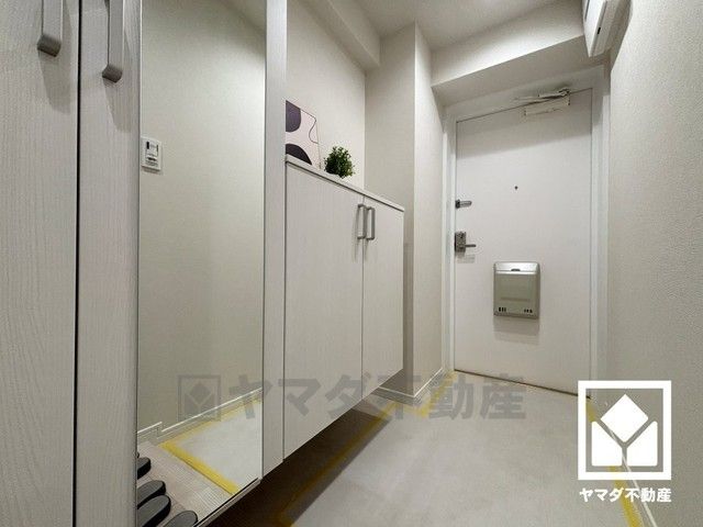 白を基調とした明るい玄関で、毎日を爽やかにスタート。広々とした開放感と清潔感あふれる空間が、訪れる人々を温かく迎えます。お出かけの前のチェックにも便利な鏡付きです。