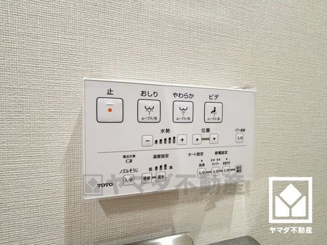 明るく清潔感溢れるトイレです。温水洗浄便座付きで、季節を問わずいつでも温かい便座をお使いいただけます。