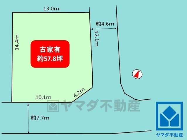 | 物件用途 | - | 接道 | 公道 北東 幅員4.6m (接面12.1m) 公道 南東 幅員7.7m (接面10.1m) |