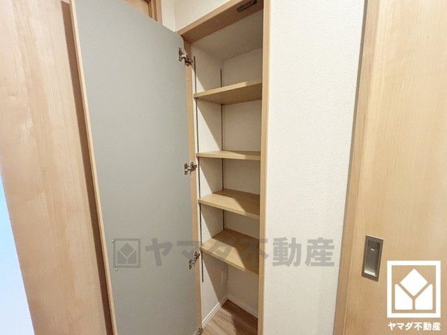 廊下や洗濯機置場上にも収納スペースがあり、住空間を広々お使いいただけます。棚も多く、整理整頓がしやすい設計になっています。