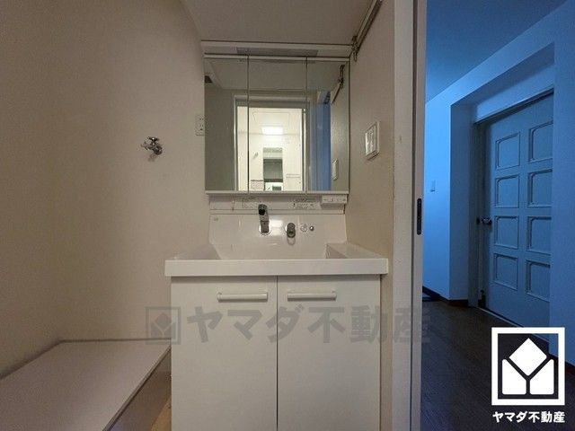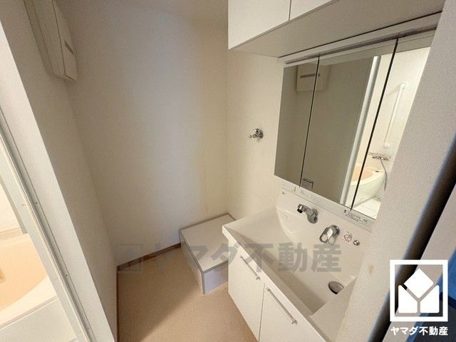 使いやすさが考えられた3面鏡の洗面台です。収納付きのためスッキリお使い頂けます。