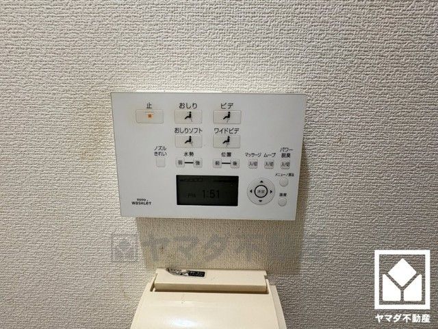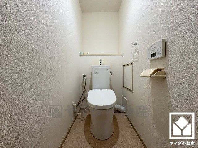 明るく清潔感溢れるトイレです。温水洗浄便座付きで、季節を問わずいつでも温かい便座をお使いいただけます。