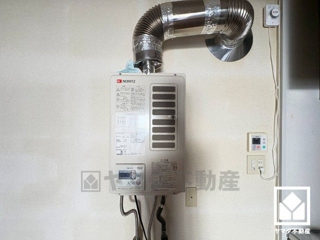 屋内式給湯器がございます。リモコン付きでいつでも暖かいお湯をご利用いただけます。