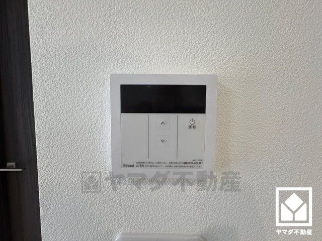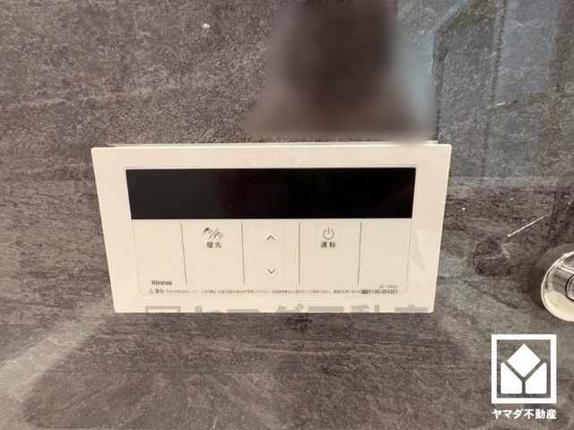 浴室側の給湯器リモコン。優先ボタン付きなので、不意の温度変更を防げます。