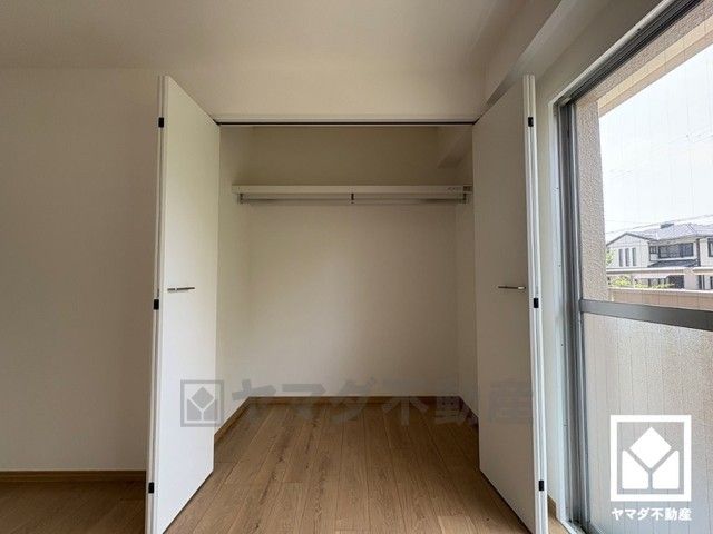全居室収納付き。新たに家具を買わなくても良いので、ハンガーパイプ付きのクローゼットは嬉しいですね。