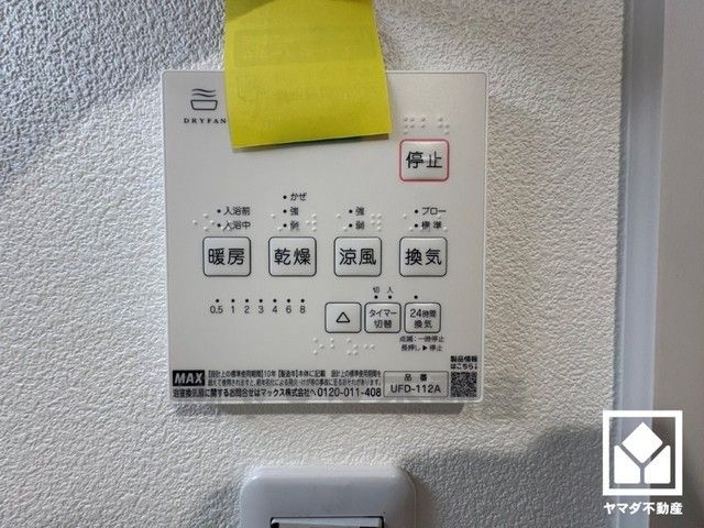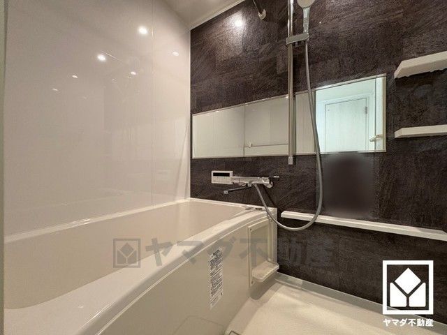 浴室暖房乾燥機付き。真冬の寒い浴室を暖かく、また雨の日の洗濯物の乾燥にと多用途に活躍する機能です。