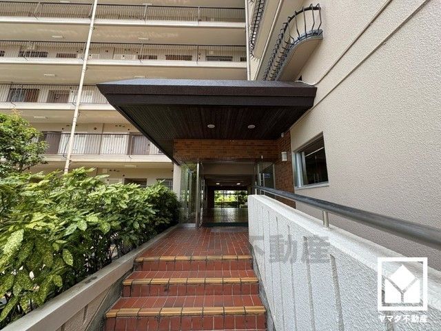 バリアフリーに配慮された、スロープ付きのエントランスアプローチ。綺麗に整備されており、帰宅時や来客時にも気持ちの良い空間です。