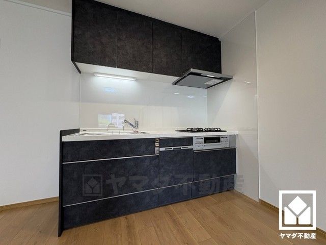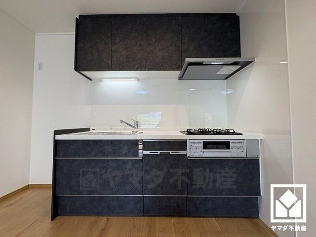 キッチンは空間を有効活用できる壁付けタイプ。3口コンロ仕様です。