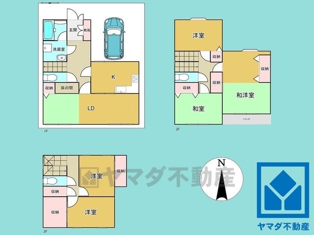 LD0畳(1F)、K0畳(1F)、洋0畳(2F)、和0畳(2F)、その他0畳(2F)、洋0畳(3F) |