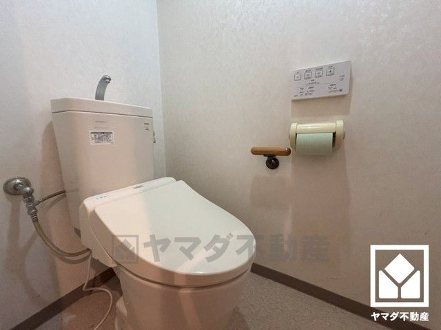 明るく清潔感溢れるトイレです。温水洗浄便座付きで、季節を問わずいつでも温かい便座をお使いいただけます。