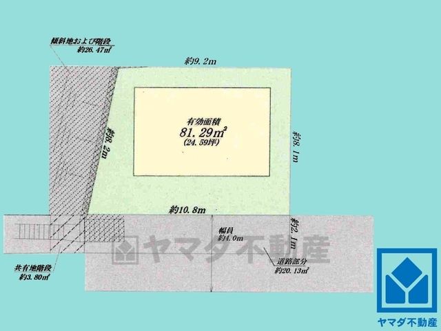 ■土地面積:公簿145.49㎡(44.01坪)、実測131.71㎡(39.84坪)※内、道路部分約20.13㎡、傾斜地・階段部分約26.47㎡、共有地階段部分約3.8㎡含む |