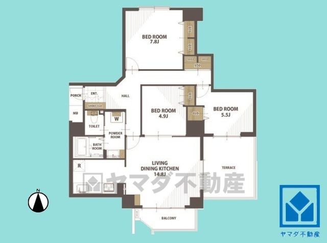 ▲14階建て3階部分、3LDK、専有面積79.68平米、バルコニー面積8.55平米、テラス面積12平米。耐震性・耐火性の高いSRC造です。