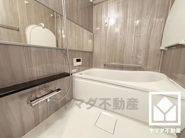 1日の疲れを癒す浴室でゆったりリフレッシュ。ナチュラルな木目調のアクセントパネルは落ち着いた雰囲気を演出してくれます。
