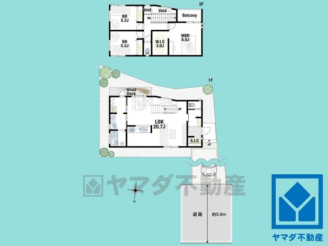 | 間取り詳細 | LDK20.7畳(1F)、洋8畳(2F)、洋5.3畳(2F) | 都市計画 | 市街化区域 |