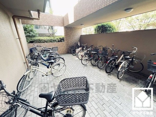 敷地内に駐車場を完備。出入り口にはリングシャッターが設置されており、セキュリティに配慮されています。空き状況はお問い合わせください。