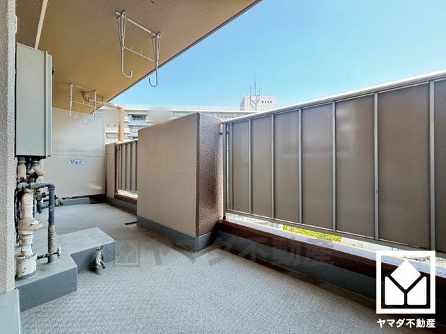 南東側バルコニーで陽当たり、風通し良好。16階部分で前面に視界を遮る高い建物がなく、開放的な景色が広がります。