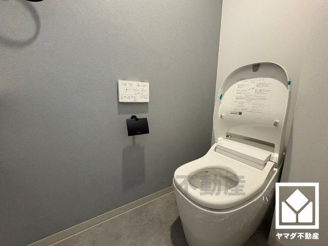 上品な壁紙が魅力的なトイレ。機能性とセンスが融合した、居心地の良いプライベートスペースです。