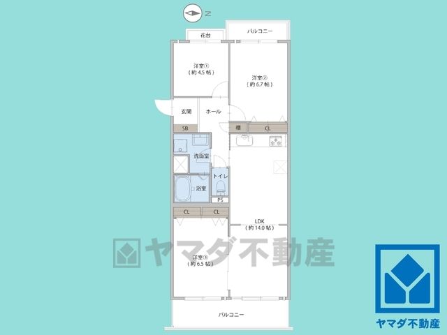 | 間取り詳細 | LDK14畳、洋6.7畳、洋6.5畳、洋4.5畳 | 土地権利 | 所有権 |