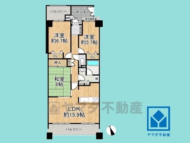 南西向き・北東向き両面バルコニーで陽当たり、風通し良好。バルコニーが2か所ございますので、お洗濯物をたっぷりと干す事ができます。