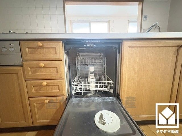フロントオープンタイプの大型食器洗浄機付き。食後の洗い物がラクラクです。