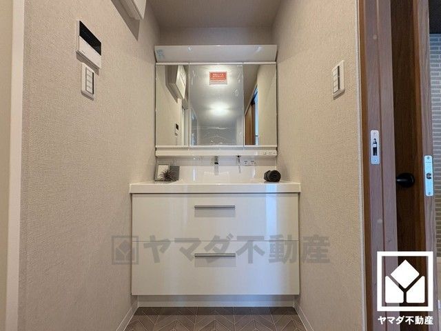 使いやすさが考えられた3面鏡です。ワイドな洗面台で朝の支度もはかどります。