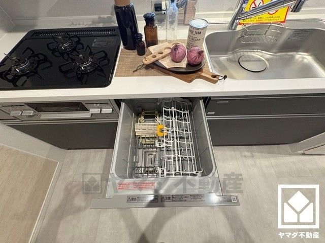 家族のごはん作りがはかどる、便利な3口コンロ仕様のキッチンです。毎日の家事の負担を軽減でき、省エネにもなる食器洗乾燥機付き。