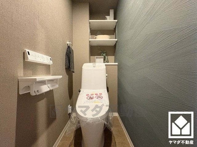 明るく清潔感溢れるトイレです。温水洗浄便座付きで、季節を問わずいつでも温かい便座をお使いいただけます。
