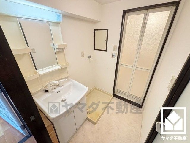 洗面台は収納付きのためスッキリお使い頂けます。洗面ボウルが広めなので、忙しい朝でも身支度がしやすく時短になります。