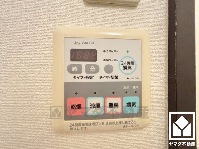 浴室暖房乾燥機付き。真冬の寒い浴室を暖かく、また雨の日の洗濯物の乾燥にと多用途に活躍する機能です。