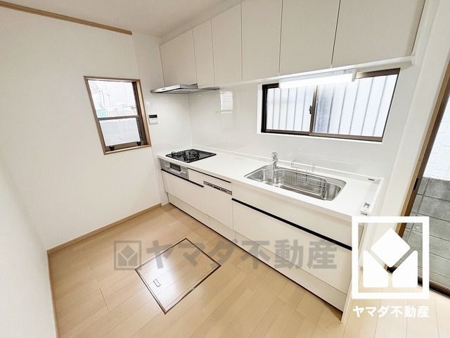キッチンは空間を有効活用できる壁付けタイプ。窓がございますので、昼間は手元が明るく、お料理がはかどります。