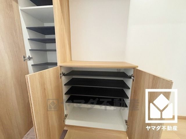 玄関にはシューズボックスを完備。家族の靴もしっかり収納できるので、玄関がいつも片付き、気持ちよくお客様を迎えられます。