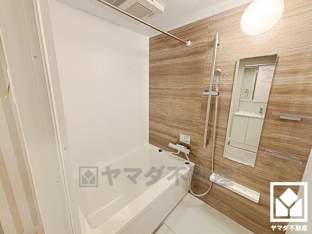 1日の疲れを癒す浴室でゆったりリフレッシュ。ナチュラルな木目調のアクセントパネルは落ち着いた雰囲気を演出してくれます。