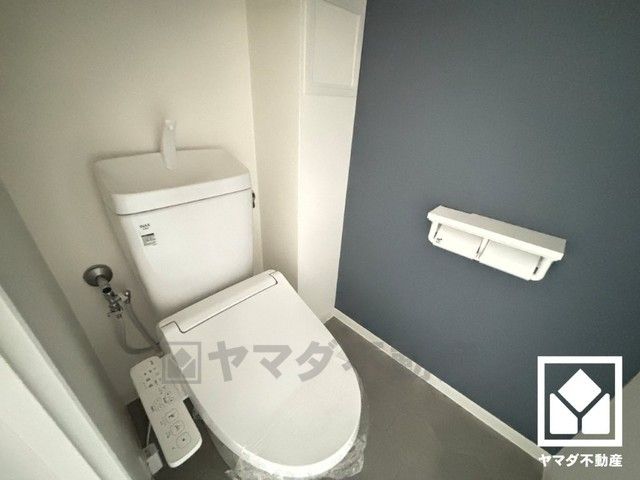 明るく清潔感溢れるトイレです。2連トイレットペーパーホルダーなのでお取替えの手間が軽減できます。