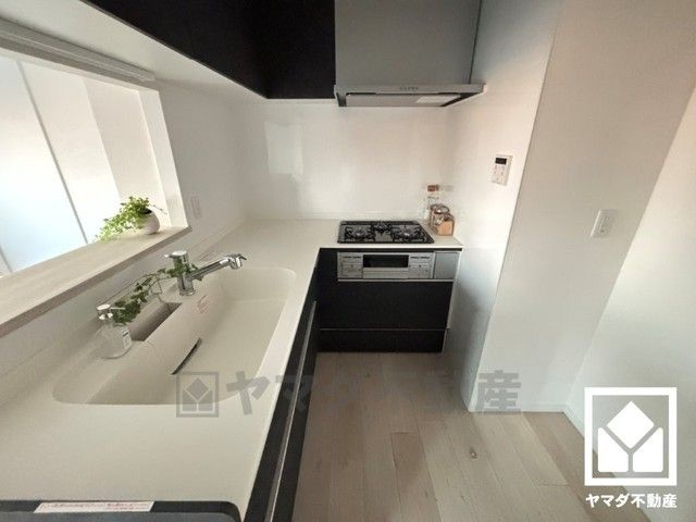 作業動線が最短距離で効率良く動けるL型キッチン。コーナー部分の作業スペースをより広く確保できているのも魅力です。