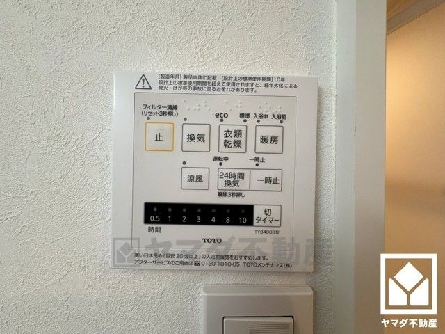 浴室暖房乾燥機付き。真冬の寒い浴室を暖かく、また雨の日の洗濯物の乾燥にと多用途に活躍する機能です。